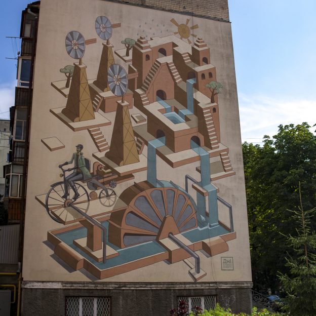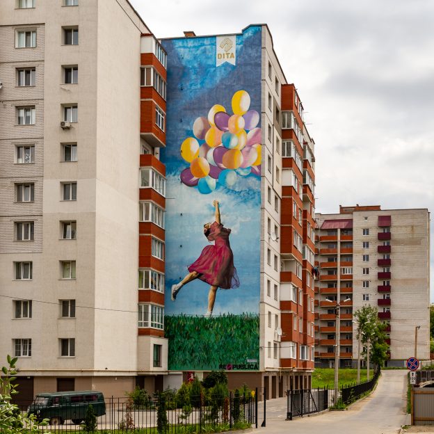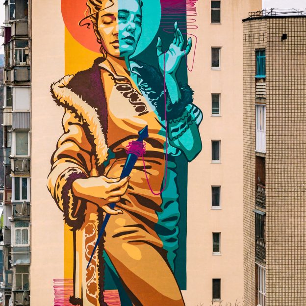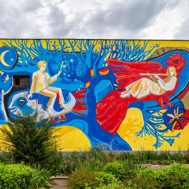 Within the «Painted Town» project realization, a couple of artists from Ivano-Frankivsk Yurii and Martha Pinchuks created a fanciful mural called «Podolianka with the Spindle».