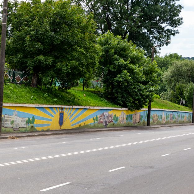 In 2018, as a gift for the City Day, the retaining wall in the Ruzhychna district, on the way out of Khmelnytskyi, was decorated with stylized images of historic buildings of the city.