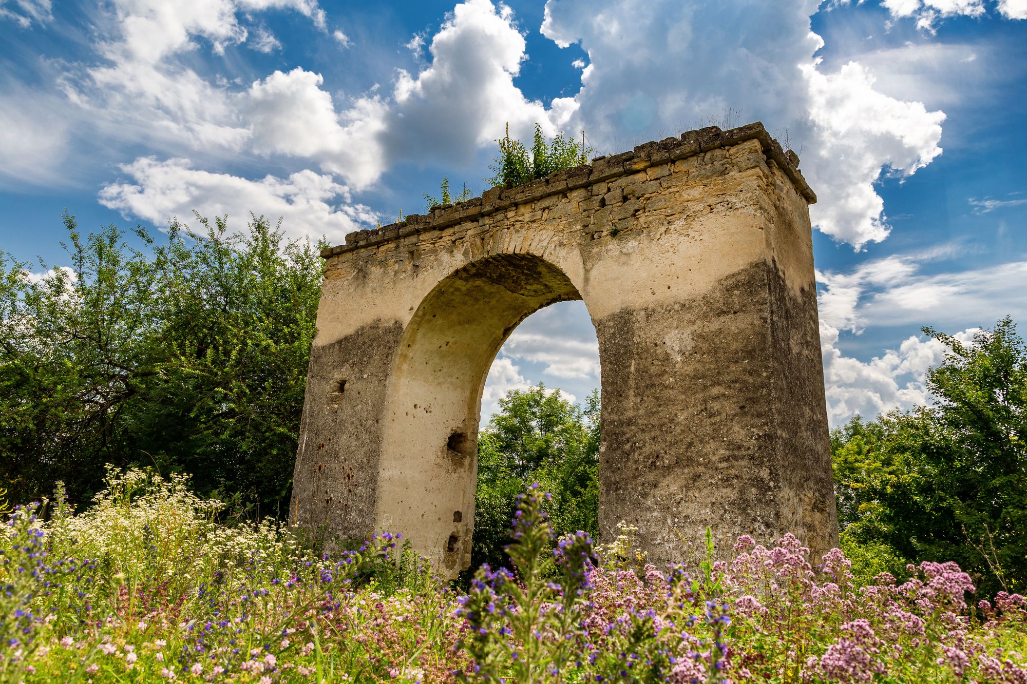 Waterfall of Kupyntsi village in Horodok district is on the verge of extinction. Today Kupyntsi waterfall is the widest among the waterfalls of Khmelnytskyi region. It is located on the Smotrych River in seven kilometers from Horodok town. History of Kupyntsi waterfall is centuries old. Locals assure that the Smotrych River water streams subsided here even during the Turkish invasion in the 1670s. Next to the waterfall is another history monument – a large ancient mill.