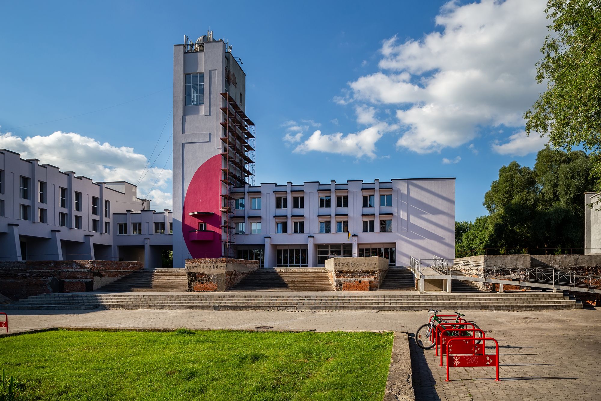 On the territory of this futuristic building there is a Military History Panorama Museum. It was established in 1989 and opened in honor of the 45th anniversary of the end of World War II. The museum has two floors. On the ground floor there are stands, the materials of which tell visitors about the beginning of the World War II, the cruelty of the Nazis invaders in our region, the struggle of the Proskuriv underground and guerrilla units against the Nazis.